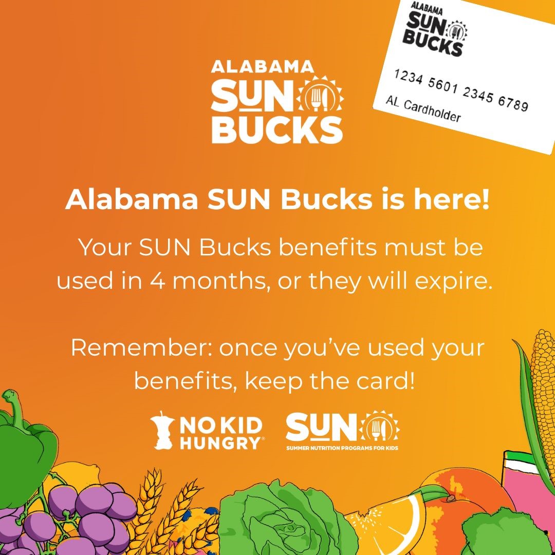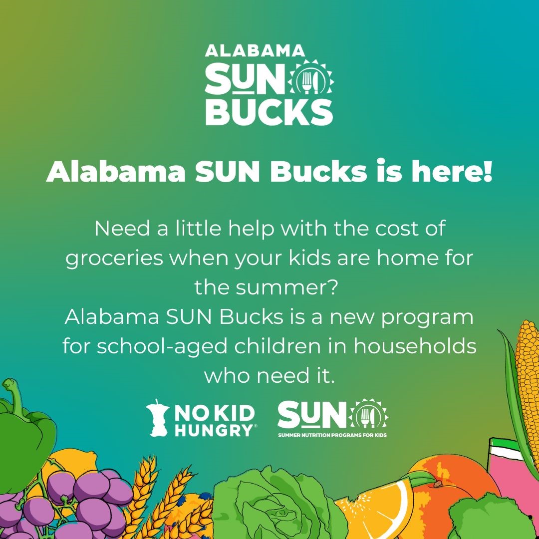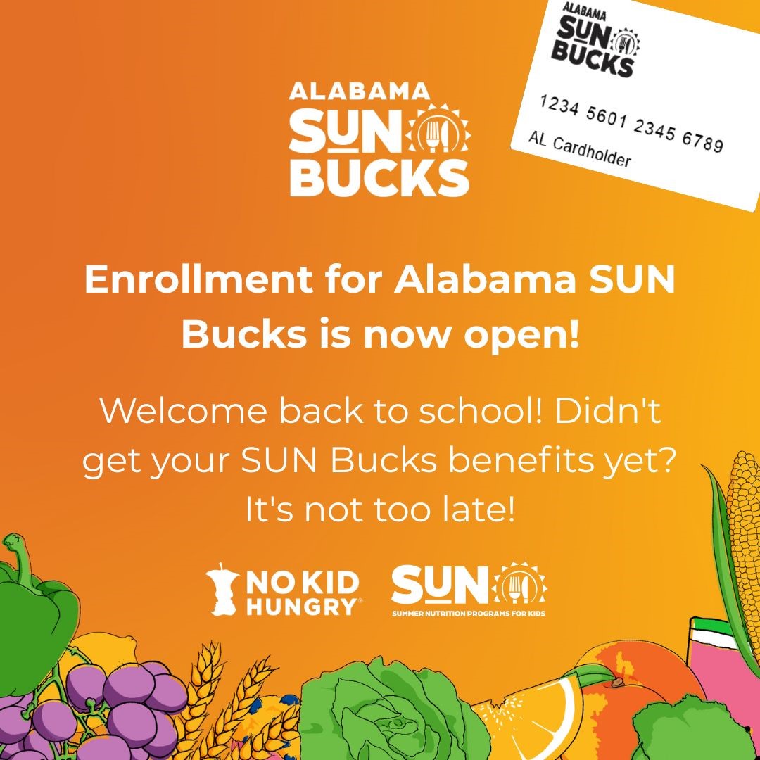 🍎If you haven’t already received or signed up for SUN Bucks, there’s still time! You can check your eligibility and apply at www.alabama-sunbucks.com