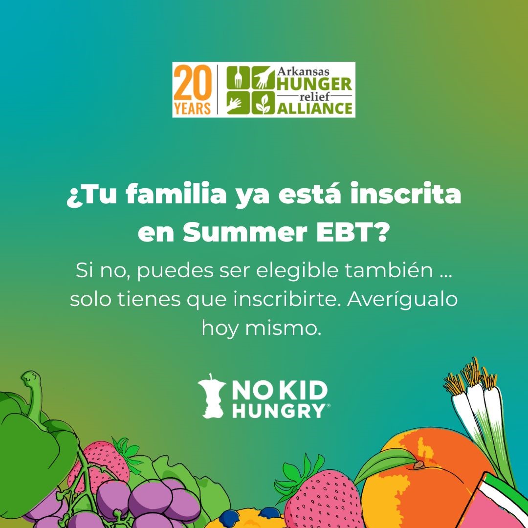 🍎 Si aún no has recibido ni te has inscrito para Summer EBT, ¡todavía estás a tiempo! Puedes averiguar tu elegibilidad en ar.gov/SummerEBT.