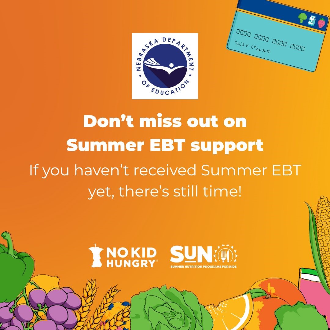 🍎 Si aún no has recibido ni te has inscrito para Summer EBT, ¡todavía estás a tiempo! Puedes averiguar tu elegibilidad en bit.ly/NE-SEBT-eligibilitychecker.